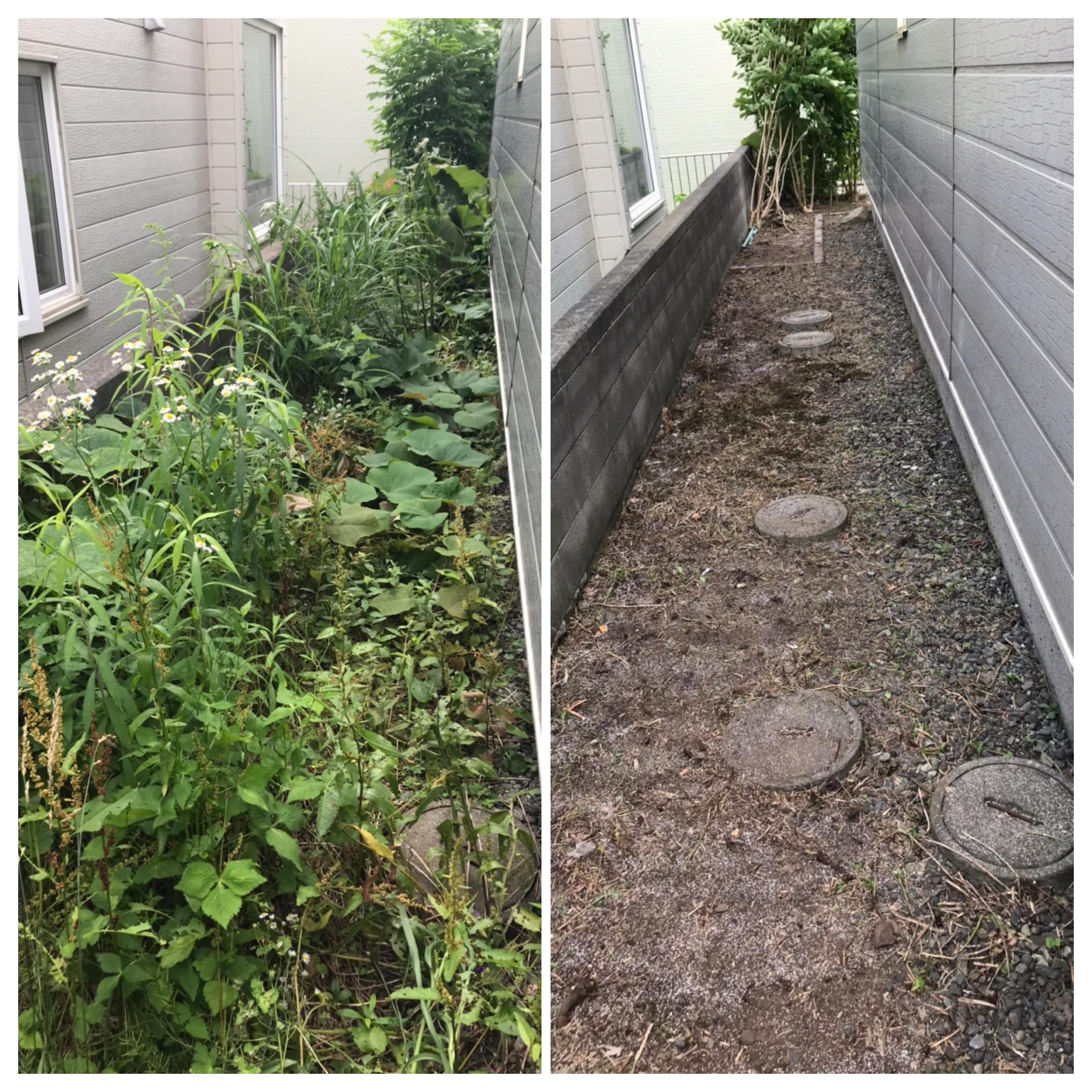 流れは草刈りと同じになります。草刈り機を入れれない場所や花壇など、大切なお花がある場所は草むしりをおススメ致します。 詳しくはこちらをクリック |